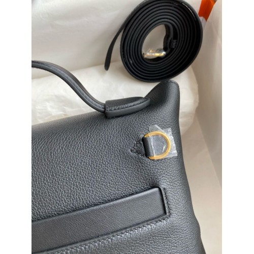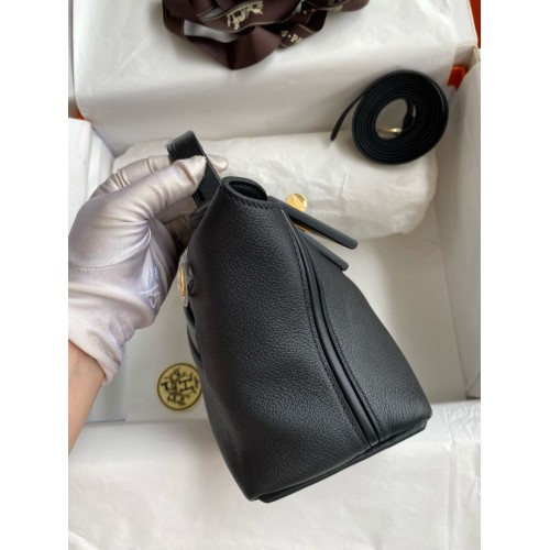 Hermes 24/24 Mini 21 Handmade Bag in Black Evercolor Leather