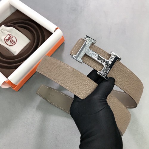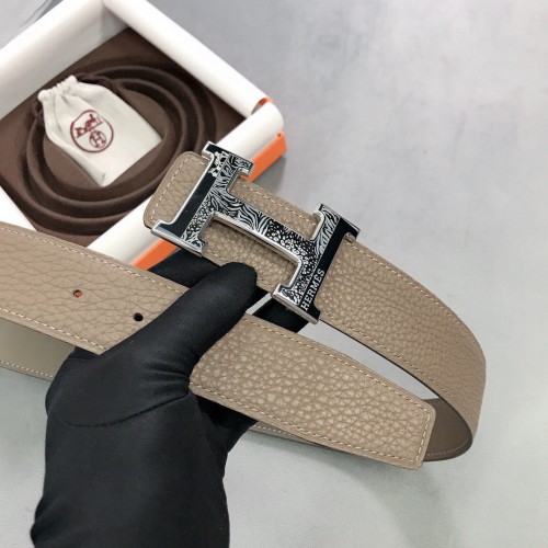 Hermes Constance Belt Buckle & Grey Clemence 38 MM Strap