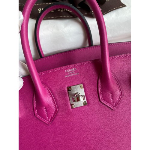 Hermes Birkin 25 Retourne Handmade Bag In Rose Purple Swift Calfskin
