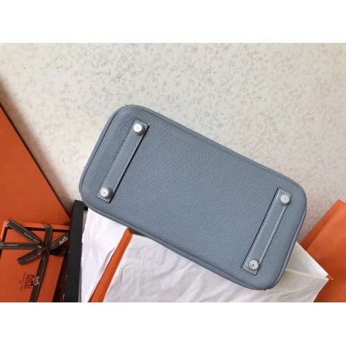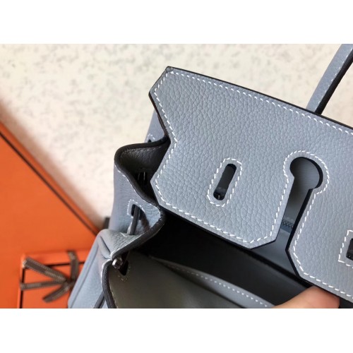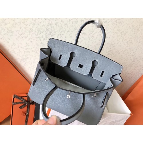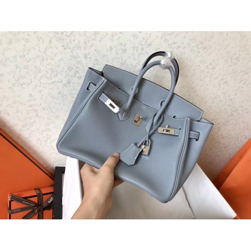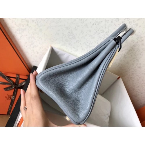 Hermes Blue Lin Clemence Birkin 25cm Handmade Bag