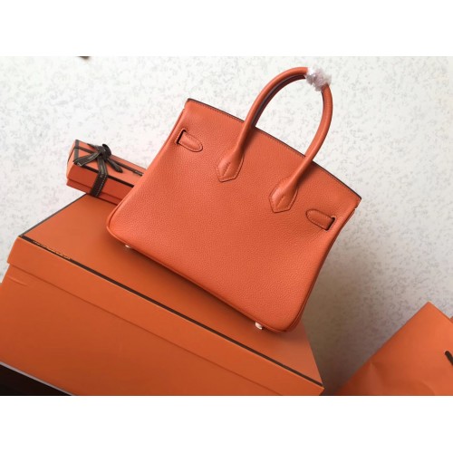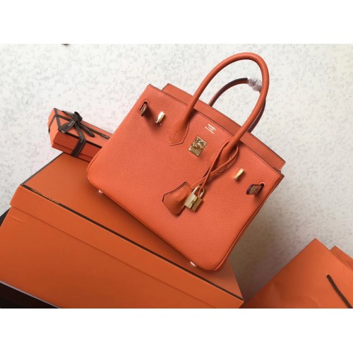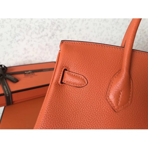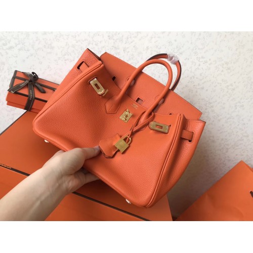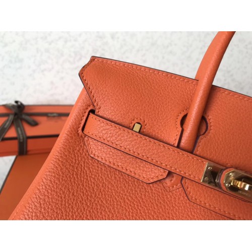 Hermes Orange Clemence Birkin 25cm Handmade Bag