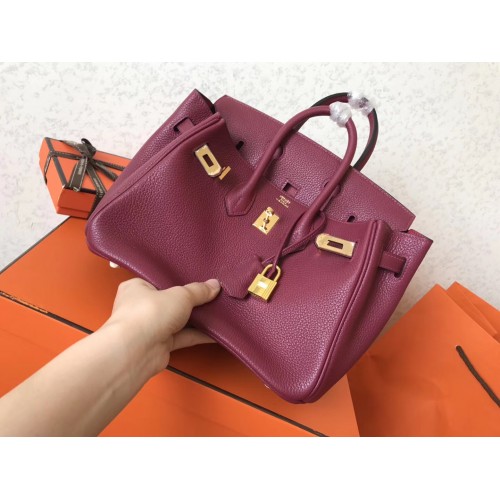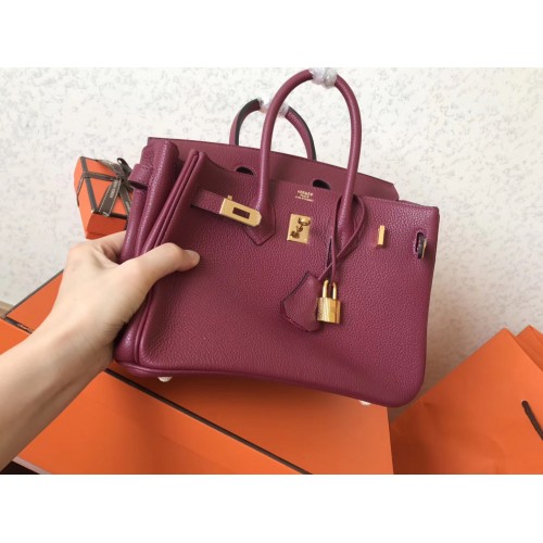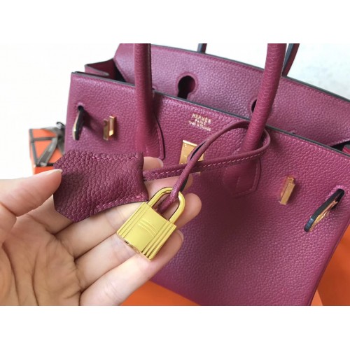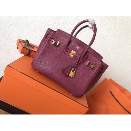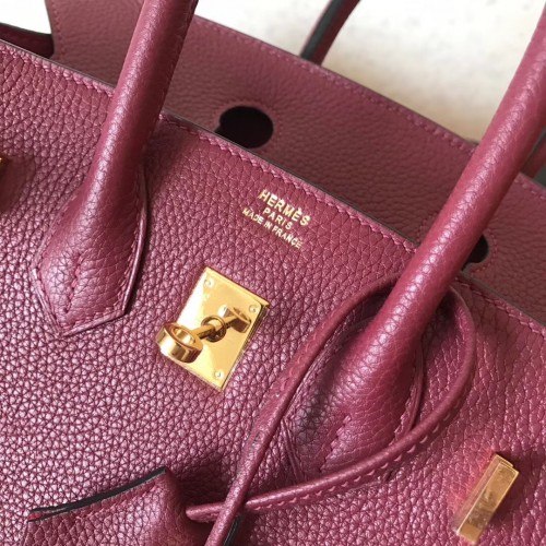 Hermes Ruby Clemence Birkin 25cm Handmade Bag