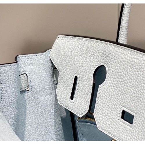 Hermes Birkin 25cm Bag In Blue Brume Clemence Leather
