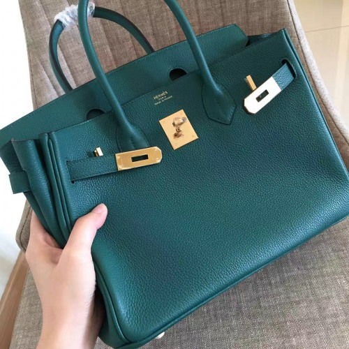 Hermes Malachite Clemence Birkin 30cm 35cm Handmade Bag