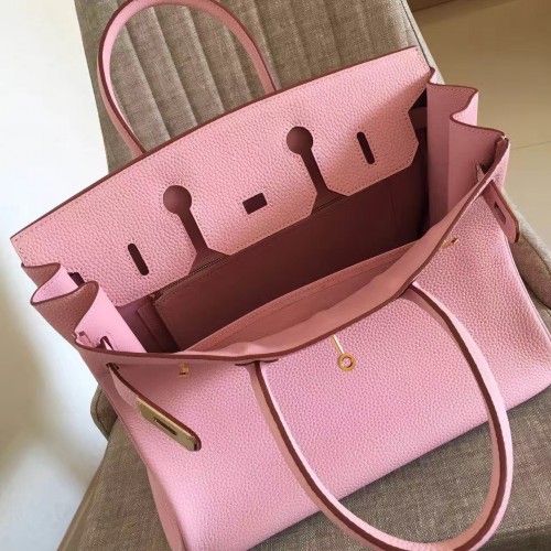 Hermes Pink Clemence Birkin 35cm Handmade Bag