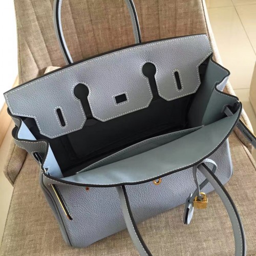 Hermes Blue Hydar Clemence Birkin 35cm Handmade Bag
