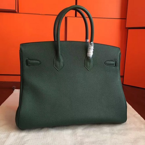 Hermes Vert Clemence Birkin 35cm Handmade Bag