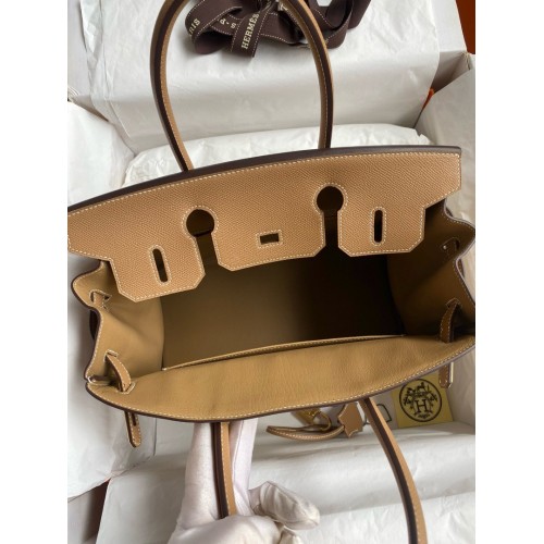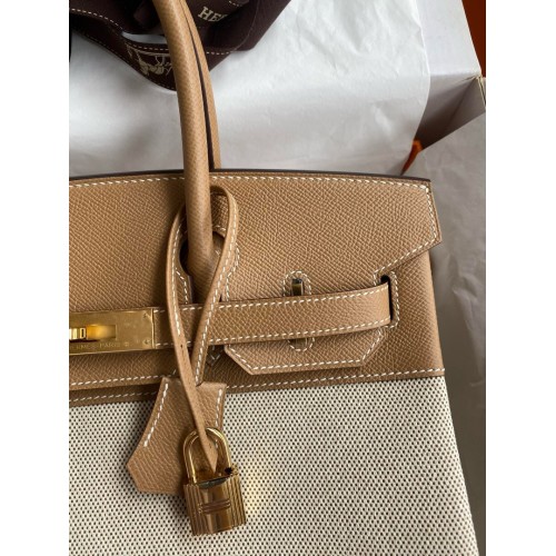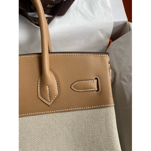 Hermes Birkin 30 Handmade Bag In Toile & Chai Epsom Leather