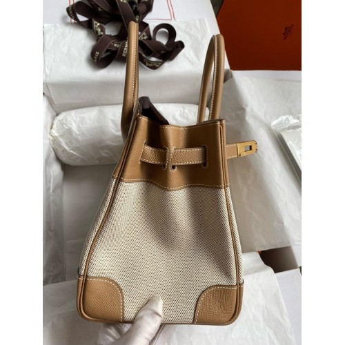 Hermes Birkin 30CM Handmade Bag In Toile & Gold Swift Leather
