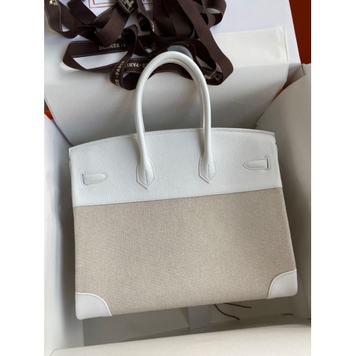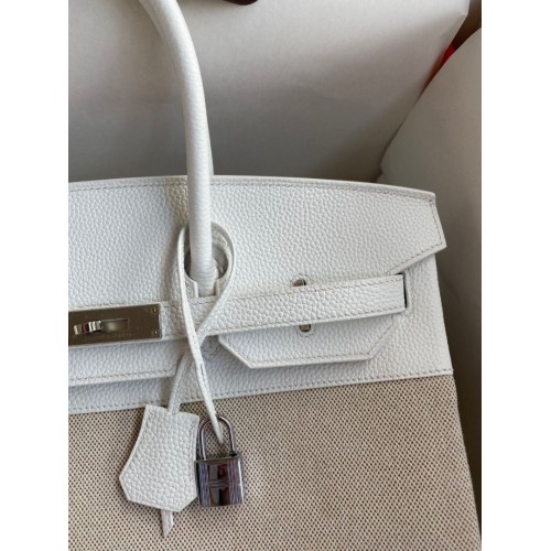 Tags: Hermes Birkin 35 Handmade Bag In Toile & White Clemence Leather, hermes birkin 35,