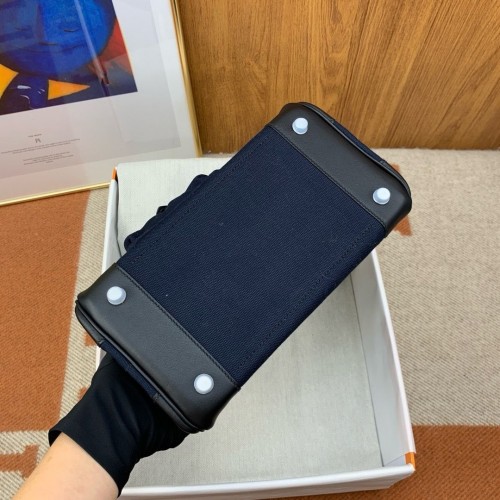 Hermes Birkin Cargo 25 Bag in Blue Toile and Black Swift Leather