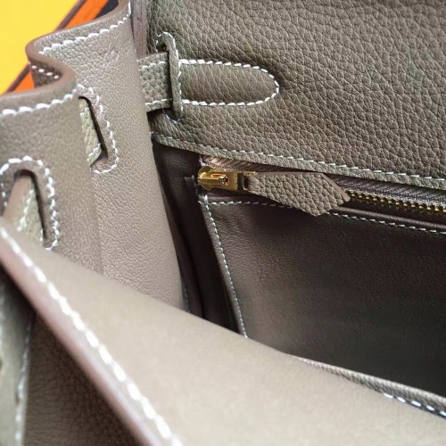 Hermes Etoupe Clemence Birkin 35cm Handmade Bag
