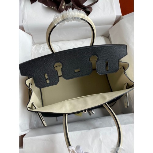 Hermes HSS Birkin 30 Bicolor Bag in Black and Craie Epsom Calfskin