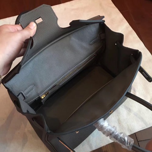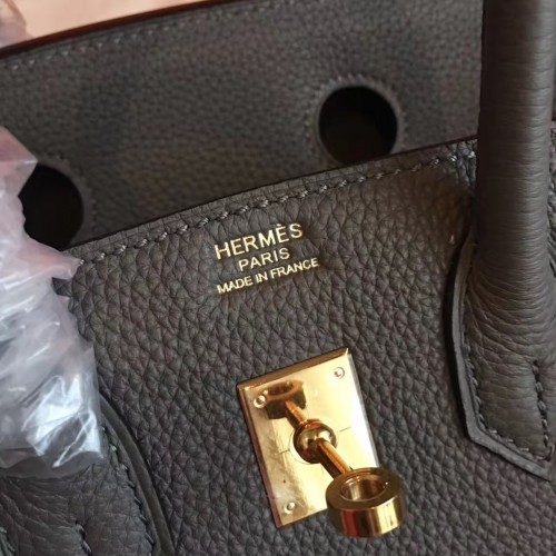Hermes Vert Gris Clemence Birkin 25cm Handmade Bag