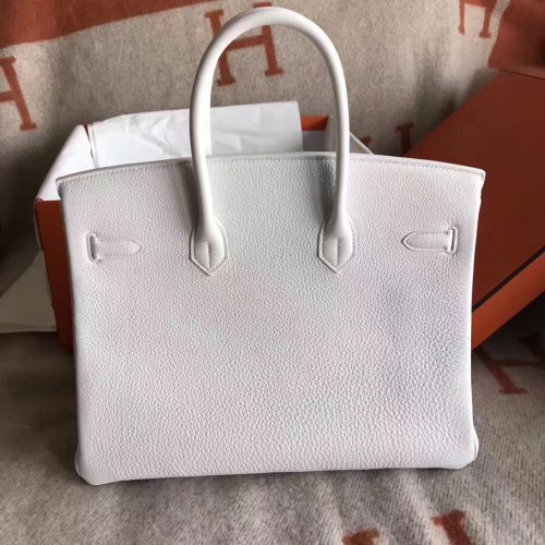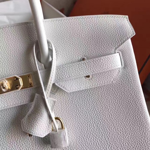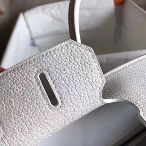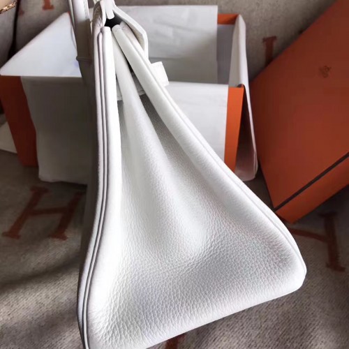 Hermes White Clemence Birkin 30cm Handmade Bag