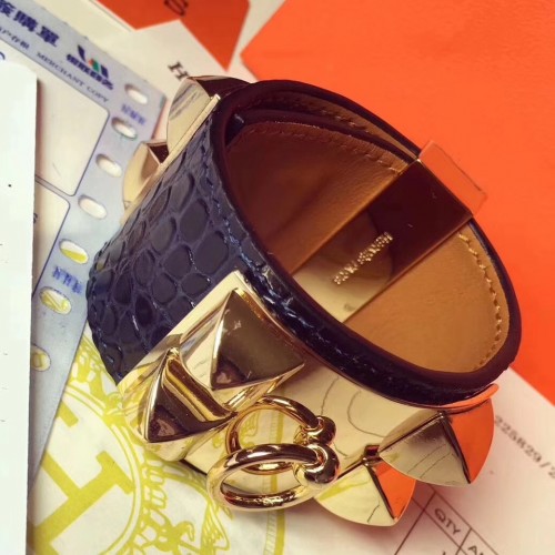 Hermes Dark Blue Alligator Collier de Chien Bracelet Size S