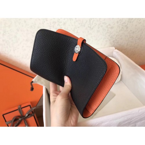 Hermes Bicolor Dogon Duo Wallet In Black/Orange Leather