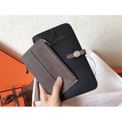 Hermes Bicolor Dogon Duo Wallet In Black/Taupe Leather