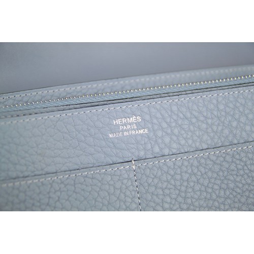 Hermes Dogon Combine Wallet In Blue Lin Leather