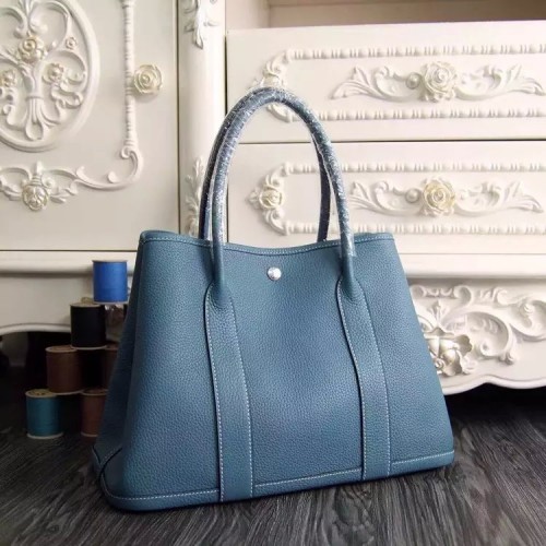 Hermes Medium Garden Party 36cm Tote In Blue Leather