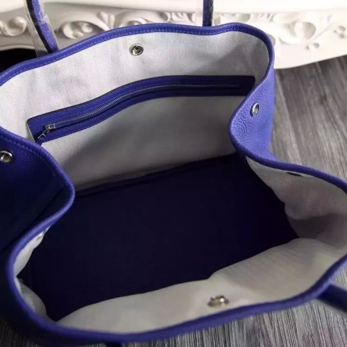 Hermes Small Garden Party 30cm Tote In Lin Blue Leather
