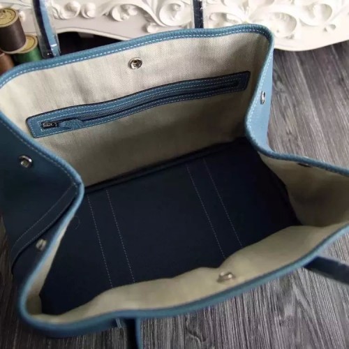 Hermes Small Garden Party 30cm Tote In Lin Blue Leather