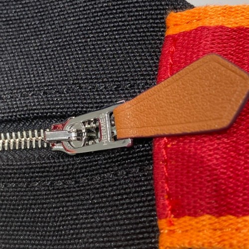 Hermes Bride-a-Brac Large Case in Ecru Canvas with Orange Zigzag Motifs