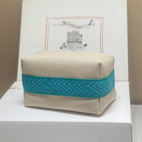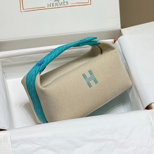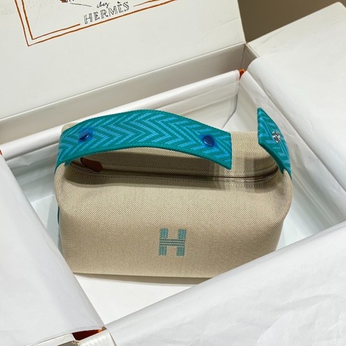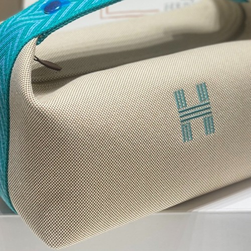 Tags: Hermes Bride-a-Brac Large Case in Ecru Canvas with Blue Atoll Zigzag Motifs, Bride A-Brac Case