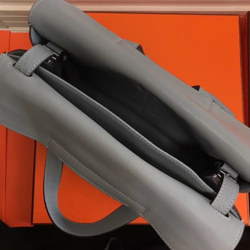 Hermes Halzan Bag In Blue Lin Clemence Leather