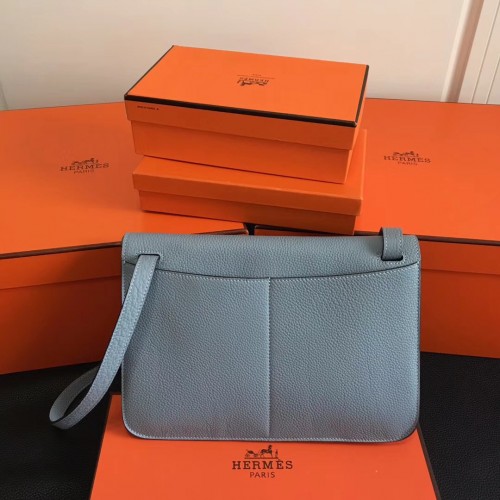 Hermes Halzan Bag In Blue Agate Clemence Leather