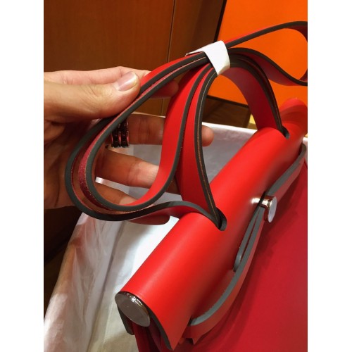 Hermes Herbag Zip 31cm Bag In Red Toile And Leather