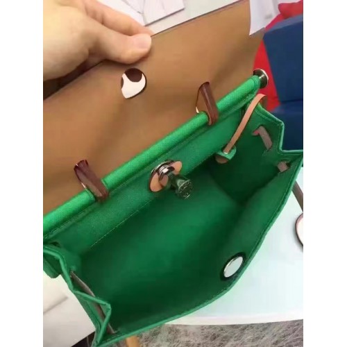 Hermes Herbag Zip PM 31cm Bag In Green Canvas