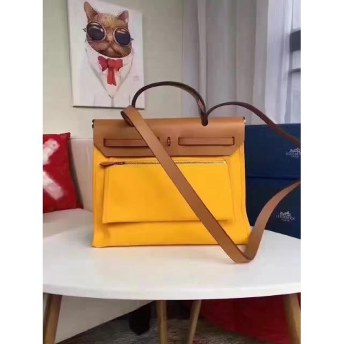 Hermes Herbag Zip PM 31cm Bag In Yellow Canvas