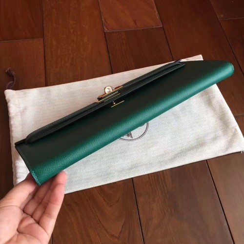 Hermes Malachite Epsom Kelly Cut Clutch Handmade Bag