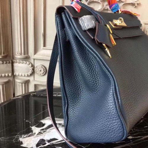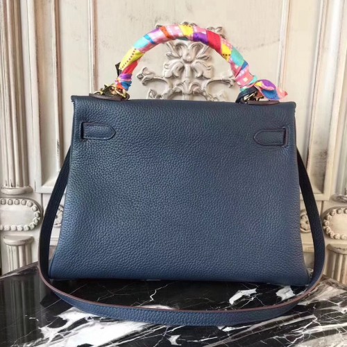 Hermes Navy Blue Clemence Kelly 32cm Retourne Bag