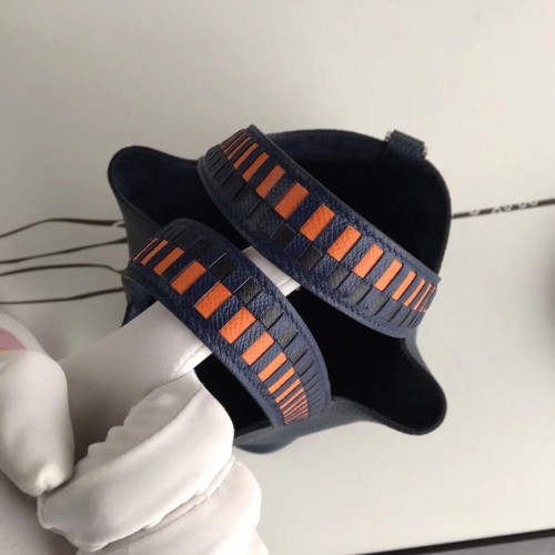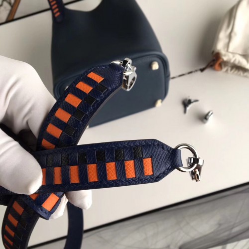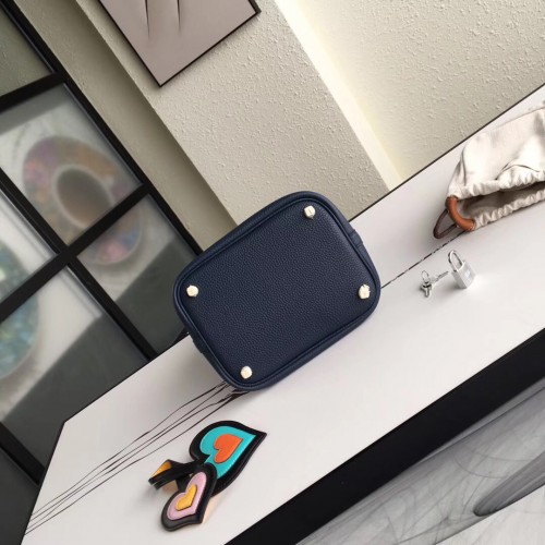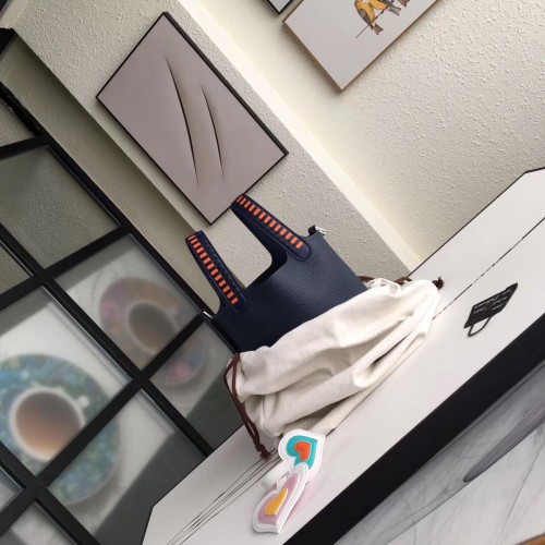Hermes Navy Blue Picotin Lock 18cm Bag With Braided Handles