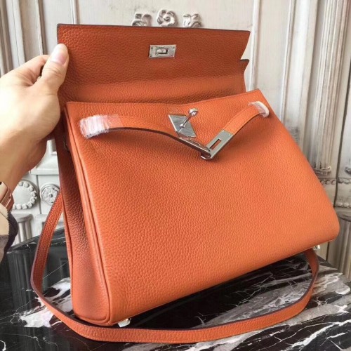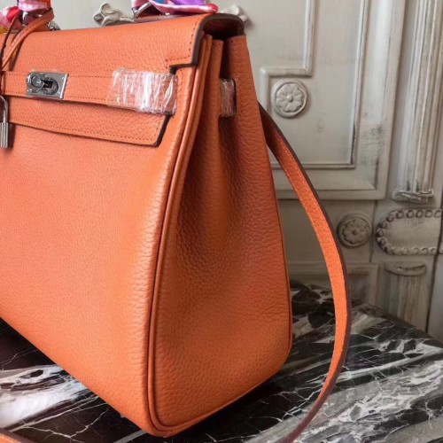 Hermes Orange Clemence Kelly 32cm Retourne Bag
