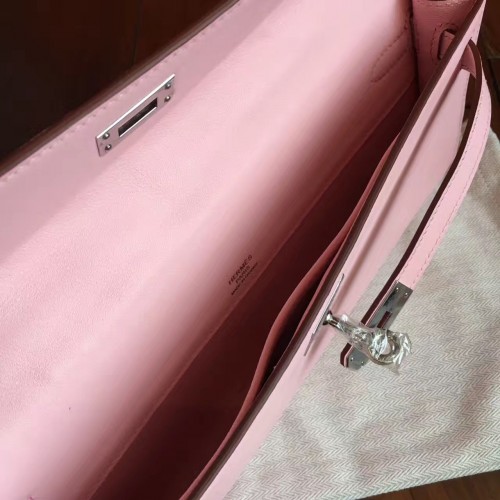 Hermes Rose Dragee Swift Kelly Cut Clutch Handmade Bag