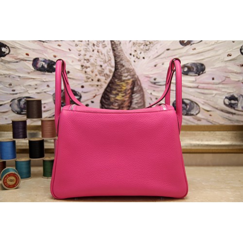 Hermes Rose Red Clemence Lindy 30cm Bag