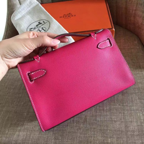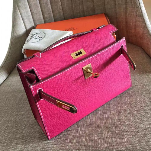 Hermes Cyclamen Epsom Kelly Pochette Handmade Bag