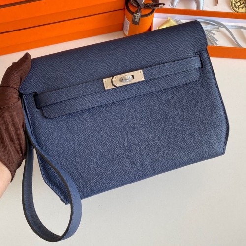 Tags: Hermes Kelly Depeches 25 Pouch in Blue Saphir Epsom Calfskin, ,