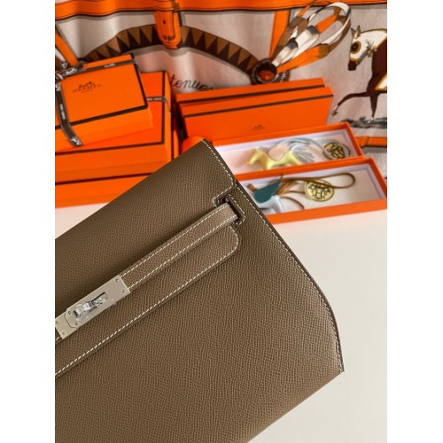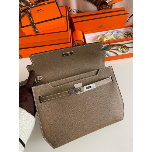 Tags: Hermes Kelly Depeches 25 Pouch in Taupe Epsom Calfskin, KD25-3, Kelly Depeches