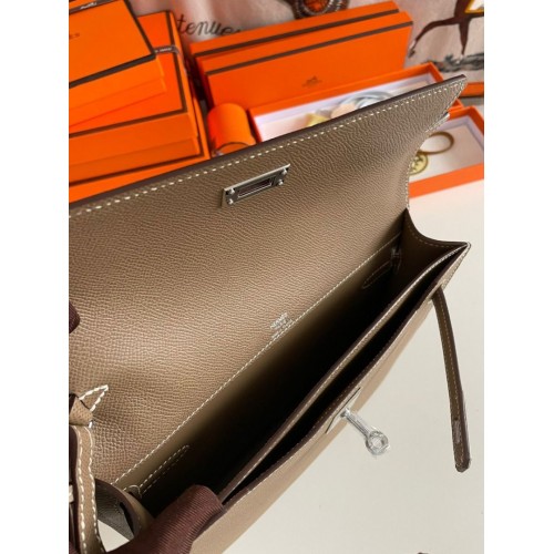 Hermes Kelly Depeches 25 Pouch in Taupe Epsom Calfskin