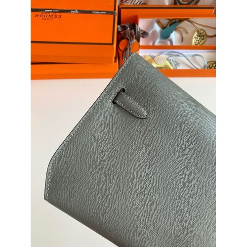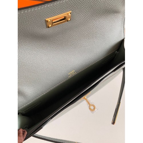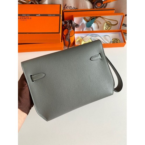 Hermes Kelly Depeches 25 Pouch in Vert Amande Epsom Calfskin