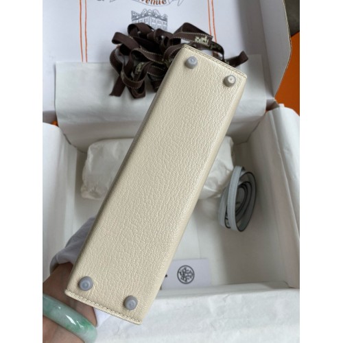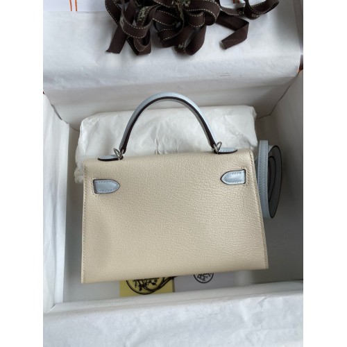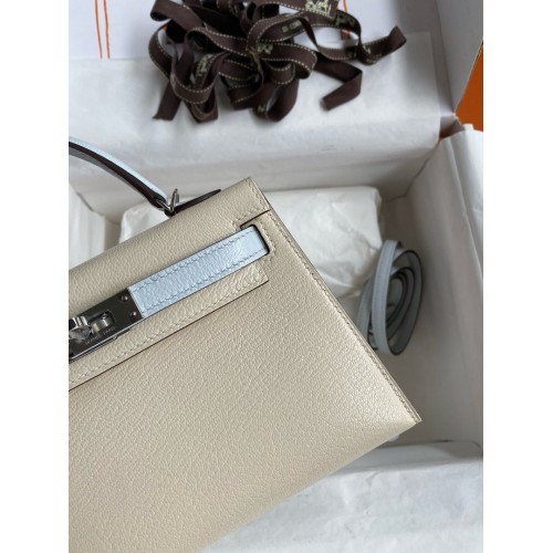 Tags: Hermes Kelly Mini II Sellier Bicolor Handmade Bag in Nata and Blue Brume Chevre Mysore Leather, Kelly 20cm