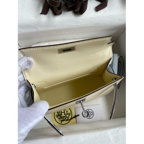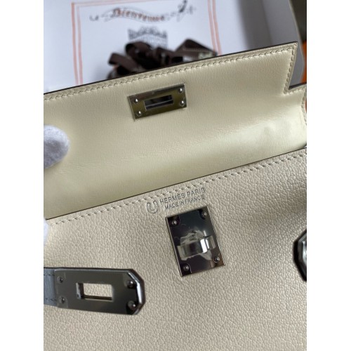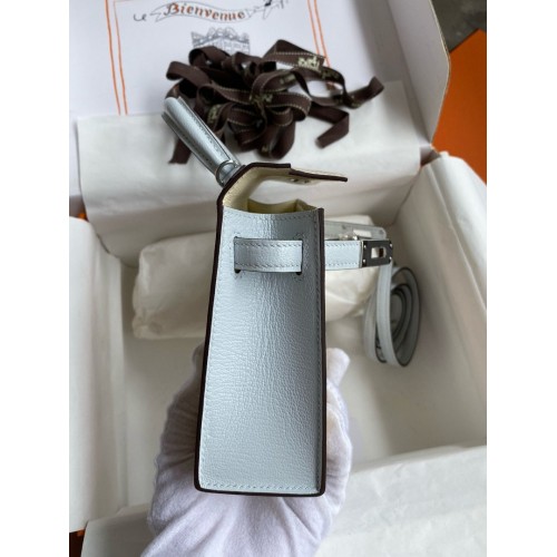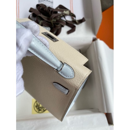 Hermes Kelly Mini II Sellier Bicolor Handmade Bag in Nata and Blue Brume Chevre Mysore Leather