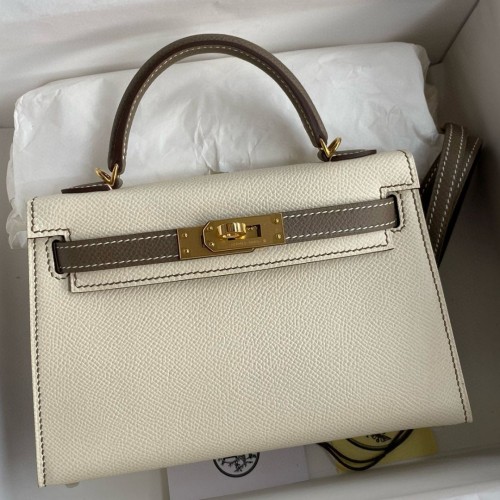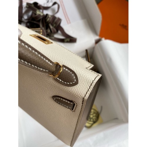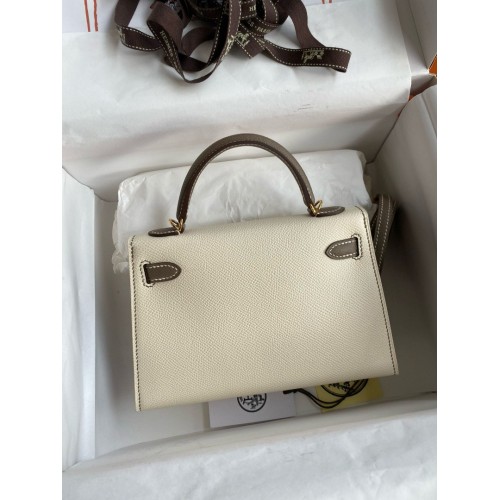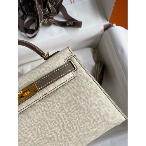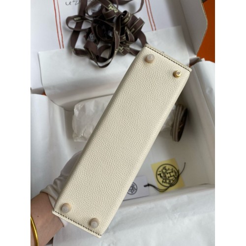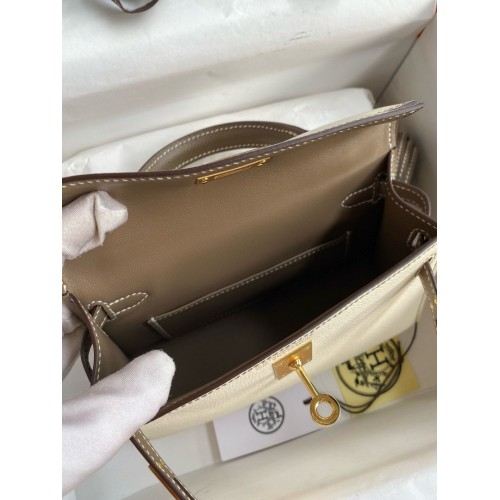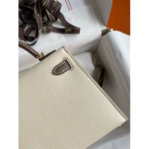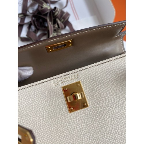 Tags: Hermes Kelly Mini II Sellier Bicolor Handmade Bag in Nata and Taupe Epsom Calfskin, replica Kelly 20cm