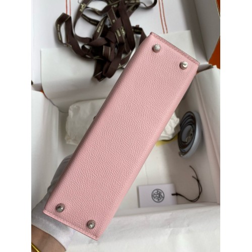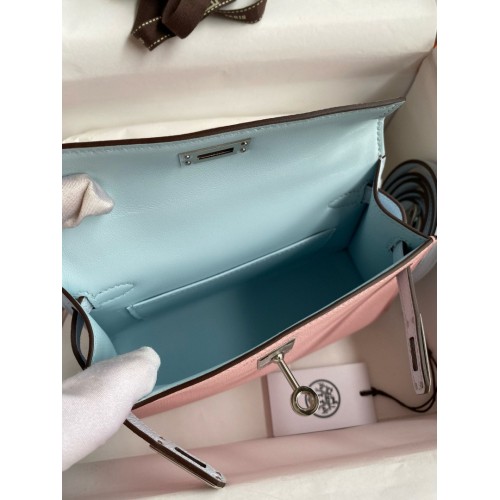 Hermes Kelly Mini II Sellier Bicolor Handmade Bag in Rose Sakura and Blue Brume Epsom Calfskin