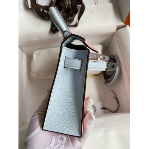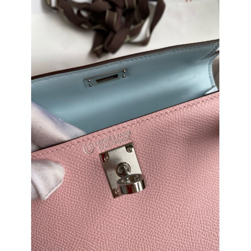 Tags: Hermes Kelly Mini II Sellier Bicolor Handmade Bag in Rose Sakura and Blue Brume Epsom Calfskin, Kelly 20cm