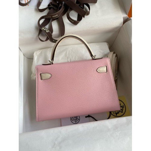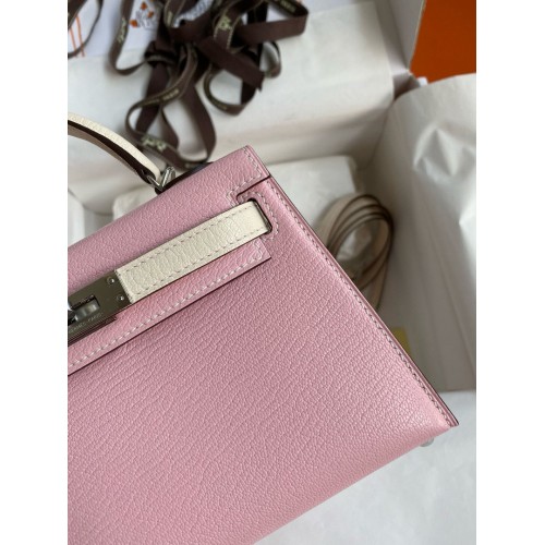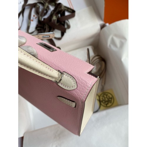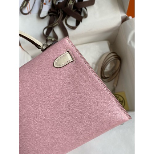 Tags: Hermes Kelly Mini II Sellier Bicolor Handmade Bag in Rose Sakura and Nata Chevre Mysore Leather, replica Kelly 20cm